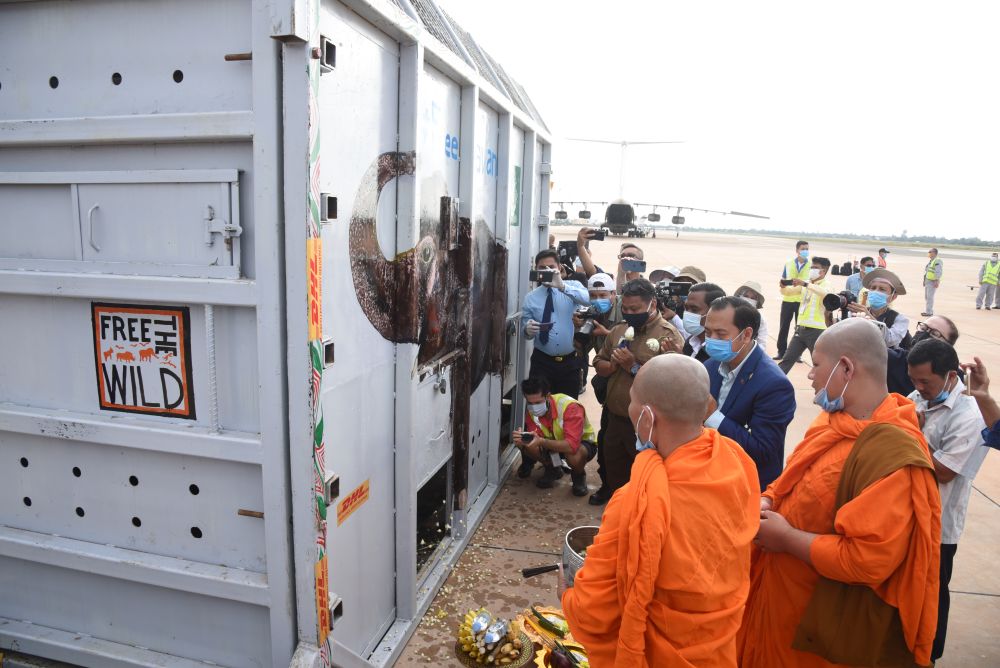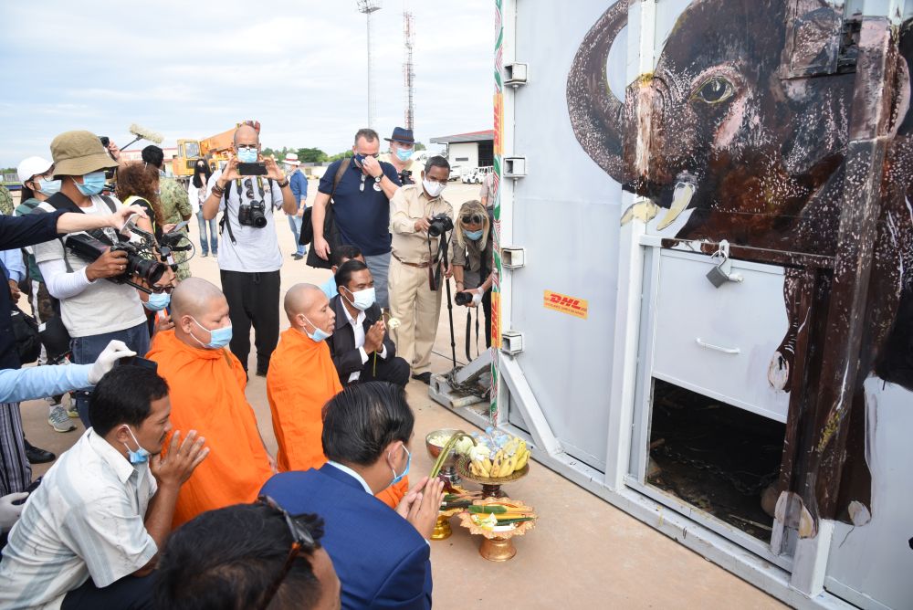 经历7小时飞行后,“卡万”抵达柬埔寨东北部城市暹粒。然后它将经历数小时卡车运输抵达保护区——那里有80多头象。