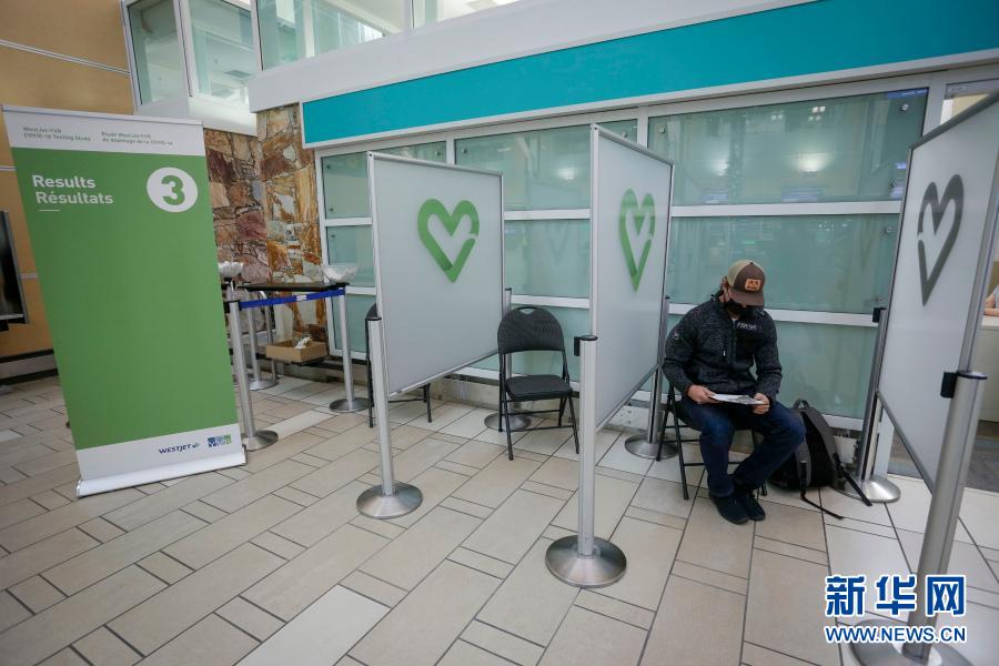 11月30日,在加拿大里士满的温哥华国际机场,一名旅客等待新冠病毒快速检测结果。