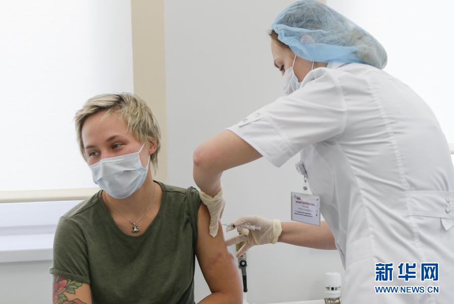 12月5日,在俄罗斯首都莫斯科,医护人员为申请者接种新冠疫苗。