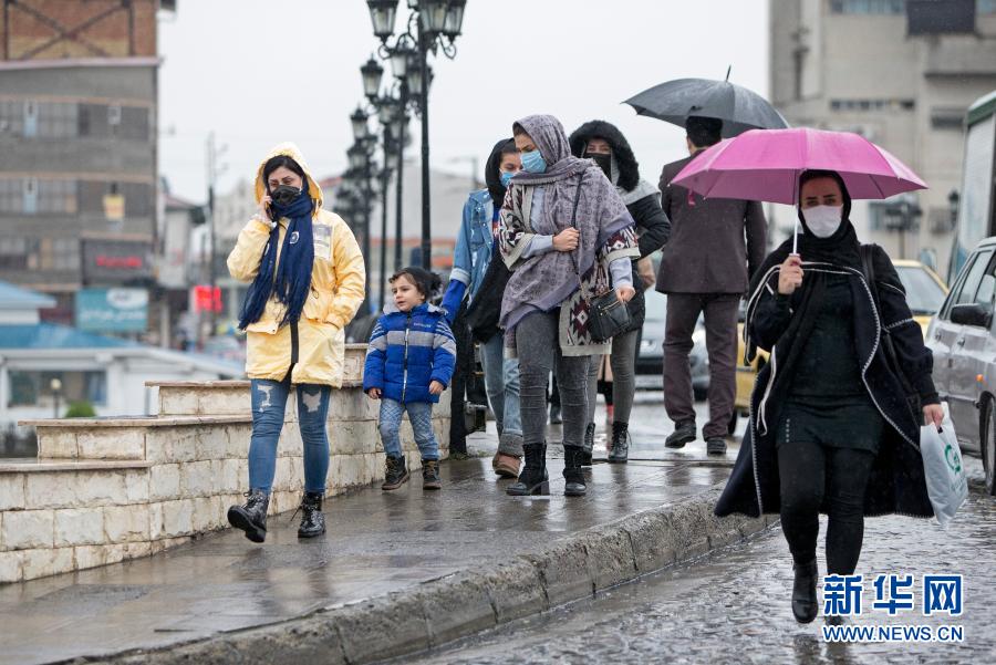 12月6日,市民佩戴口罩在伊朗通卡邦街头出行。