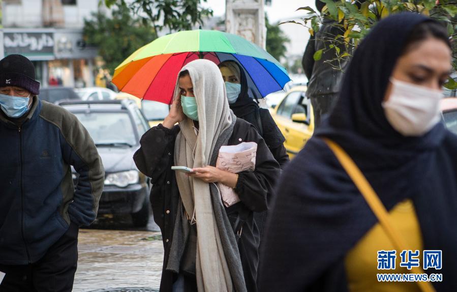 12月6日,市民佩戴口罩在伊朗通卡邦街头出行。