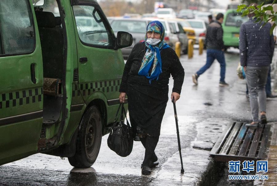12月6日,市民佩戴口罩在伊朗通卡邦街头出行。
