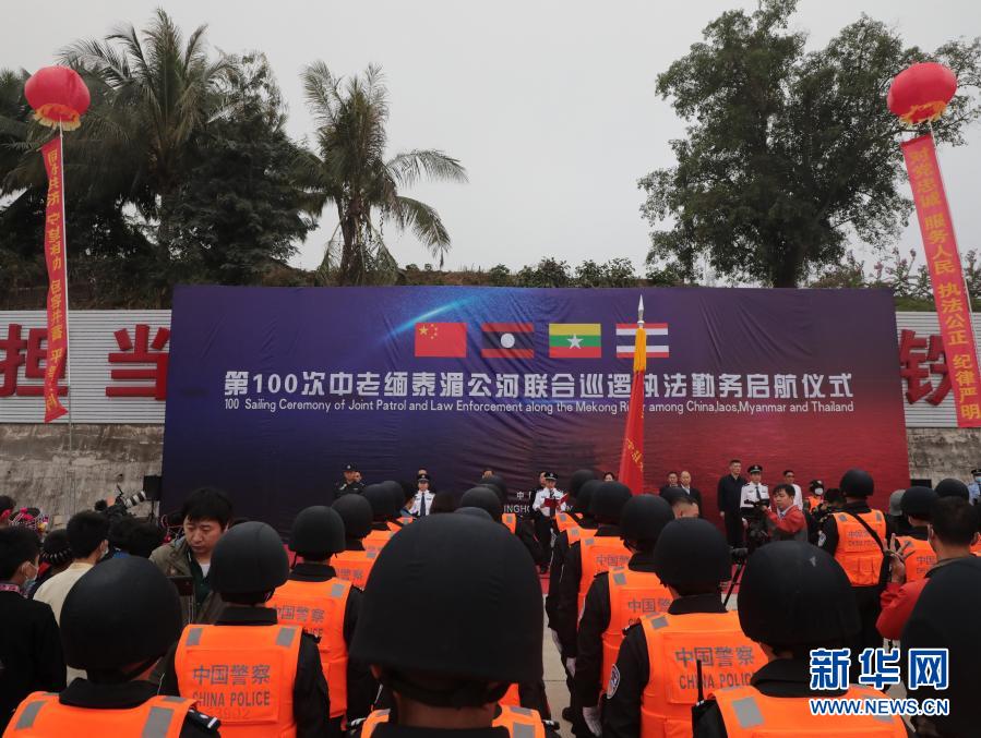 新华社昆明12月8日电(记者庄北宁)12月8日9时30分,4艘执法艇在中国西双版纳景哈码头鸣笛启航,标志着第100次中老缅泰湄公河联合巡逻执法行动正式启动。启航前,云南省公安厅隆重举行启航仪式,公安部国际合作局、云南省公安厅相关负责人向驻老挝孟莫和班相果联络点的中方执勤分队授旗。