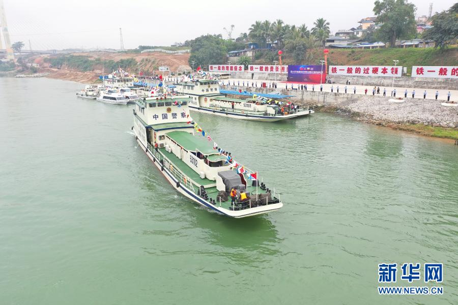 这是第100次中老缅泰湄公河联合巡逻执法勤务启航仪式现场(12月8日摄)。新华社发(云南省公安厅水上巡逻总队提供)