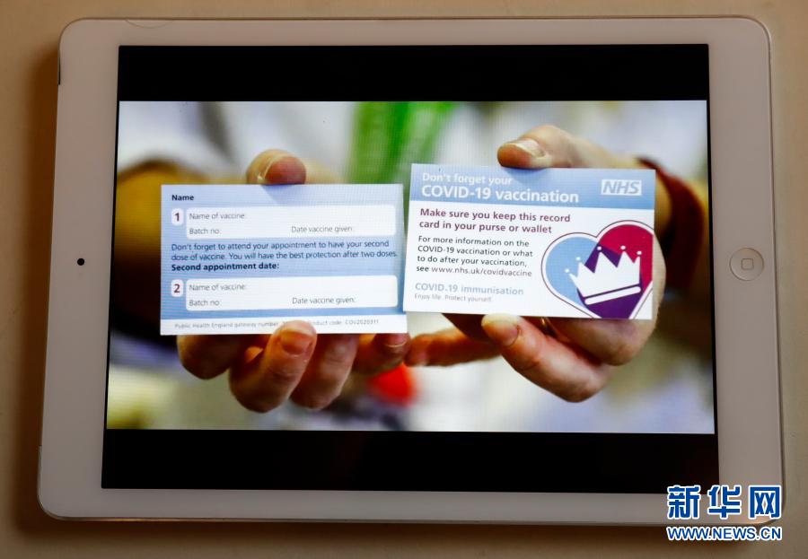 这是12月8日在英国伦敦拍摄的显示新冠疫苗接种卡的电脑屏幕。