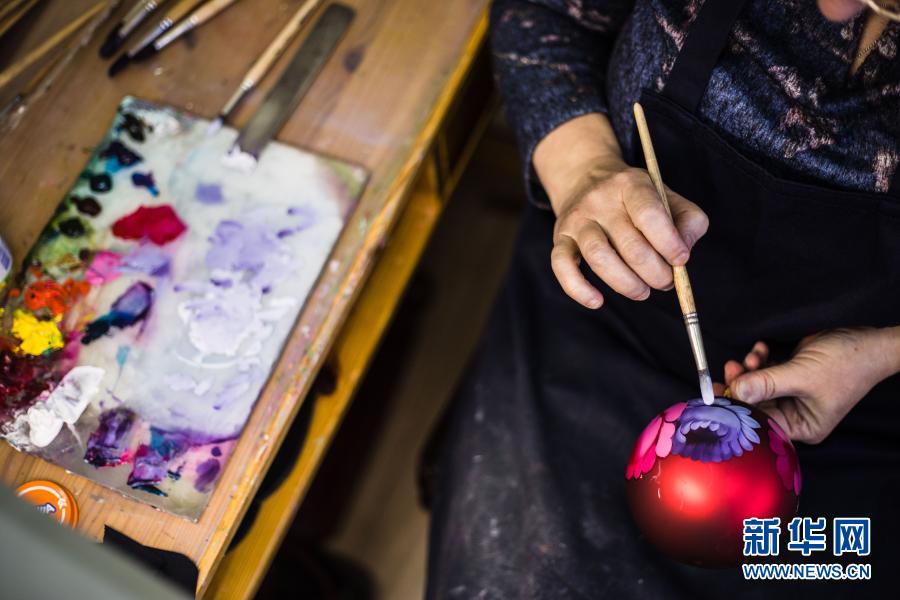 12月8日,在俄罗斯莫斯科州若斯托沃村,工作人员绘制用于装饰新年枞树的彩球。