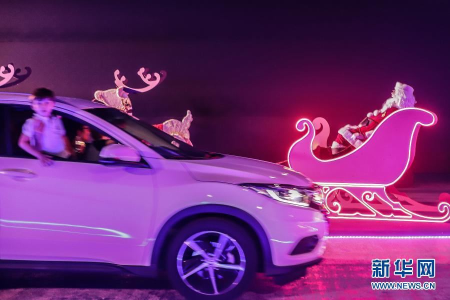 12月8日,游客在巴西圣保罗市驾车参观圣诞灯光秀。