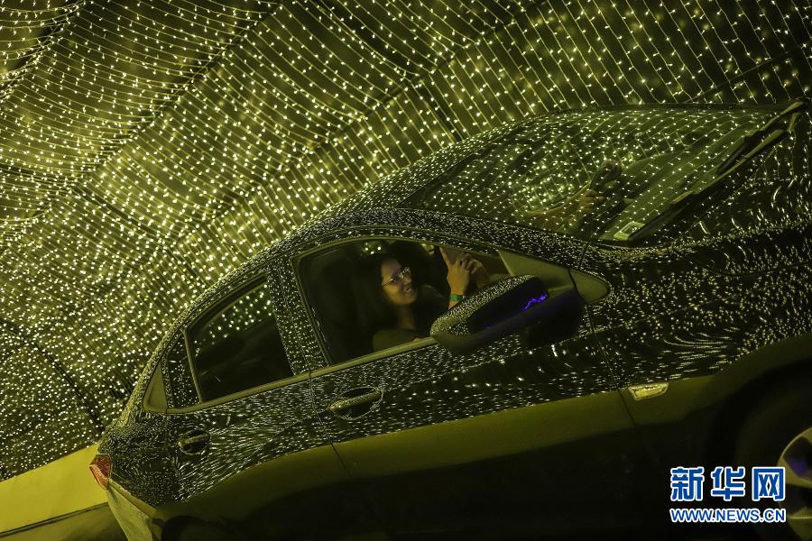 12月8日,游客在巴西圣保罗市驾车参观圣诞灯光秀。