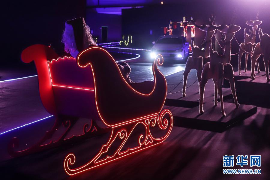 12月8日,汽车驶过巴西圣保罗市一个圣诞灯光秀现场。