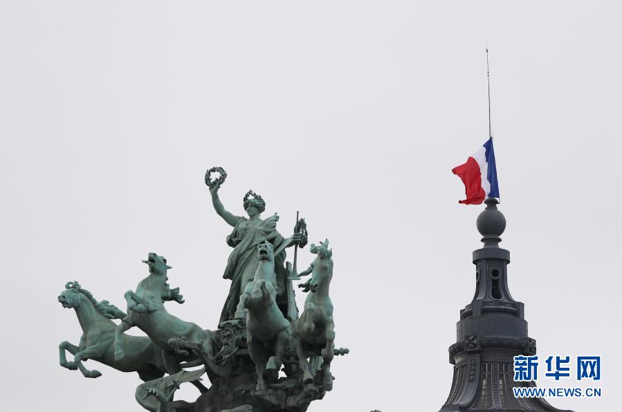 12月9日,法国巴黎大皇宫博物馆降半旗,悼念2日逝世的前总统德斯坦。
