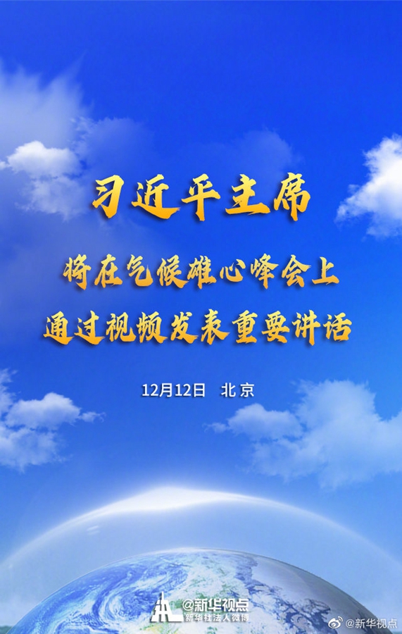 新华社北京12月11日电 外交部发言人华春莹11日宣布:应联合国秘书长古特雷斯、法国总统马克龙、英国首相约翰逊、智利总统皮涅拉、意大利总理孔特联名邀请,国家主席习近平将于12月12日出席气候雄心峰会并发表重要讲话。会议将以视频方式举行。