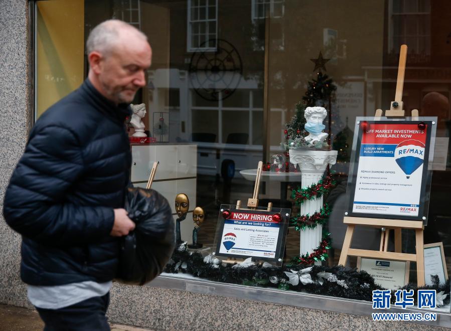 12月13日,一名男子从英国伦敦一家店铺旁走过。 新华社记者韩岩摄