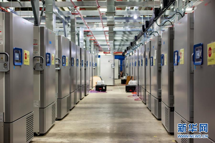 这是美国辉瑞制药有限公司位于美国密歇根州的工厂中用于存储新冠疫苗的冷藏设备。这款疫苗需在零下70摄氏度环境中保存。