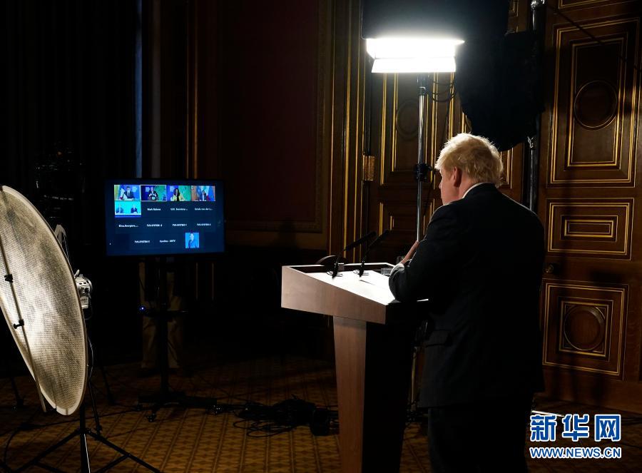 12月12日,在英国伦敦,英国首相鲍里斯·约翰逊在气候雄心峰会上通过视频发表讲话。