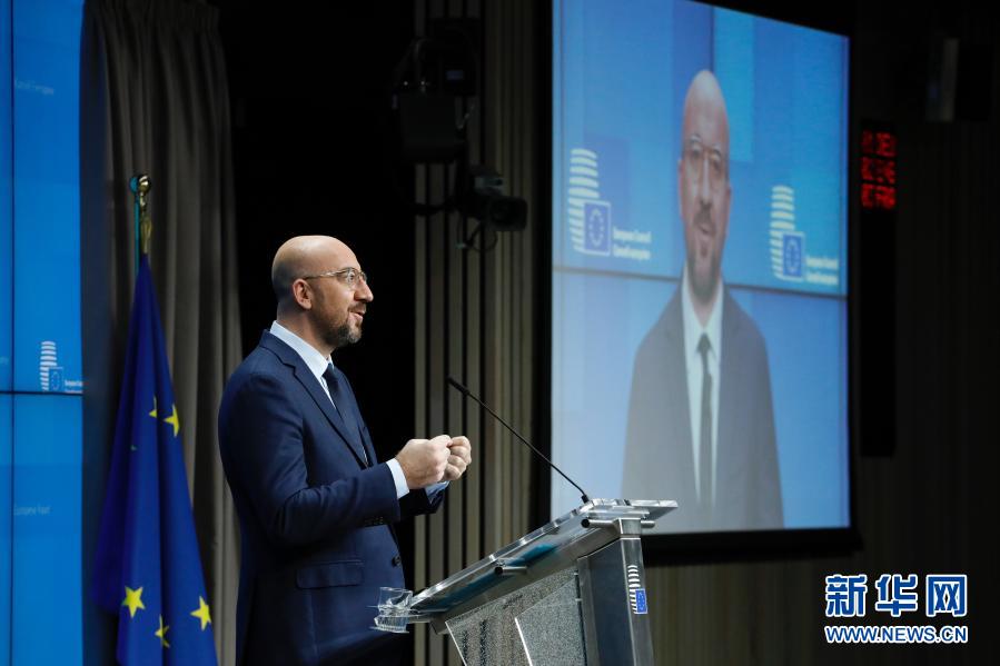 12月12日,在比利时布鲁塞尔,欧洲理事会主席米歇尔在气候雄心峰会上通过视频发表讲话。