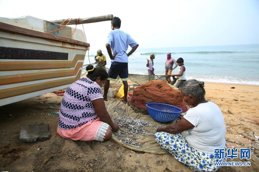 12月12日,在斯里兰卡首都科伦坡附近的莫勒图沃,渔民在海边分拣捕获的鱼。