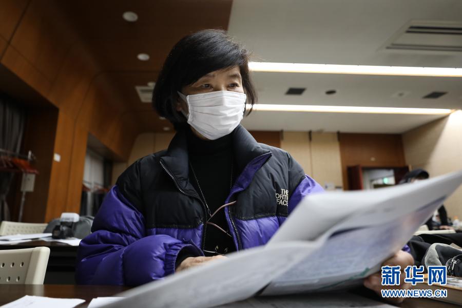 12月13日,佐藤江都子女士在日本东京举行的纪念南京大屠杀83周年集会现场翻看相关资料。新华社记者 杜潇逸 摄