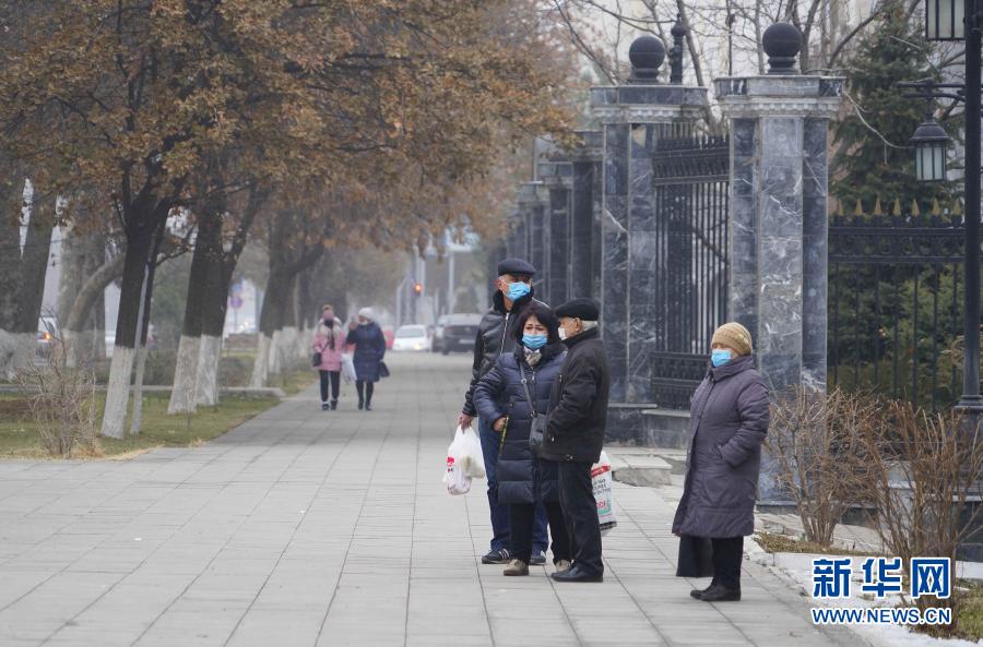 12月14日,在乌兹别克斯坦首都塔什干,市民佩戴口罩在街边等待公交车。新华社发(扎法尔摄)