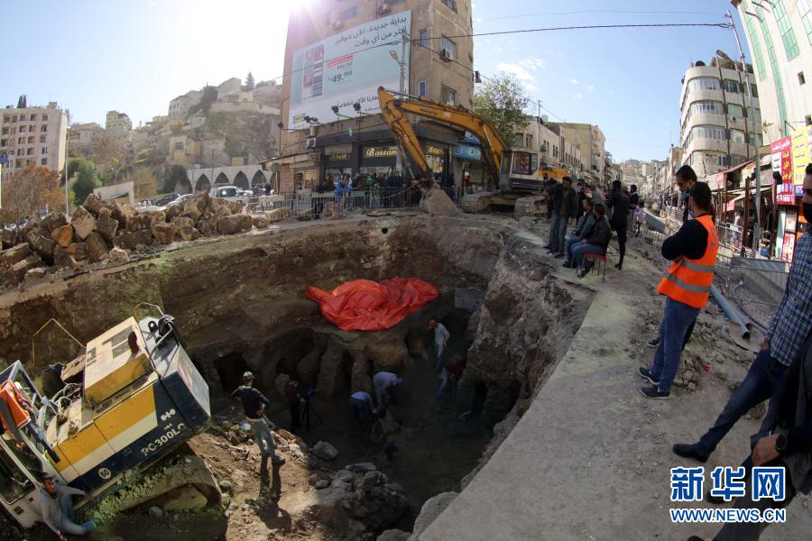12月14日,在约旦首都安曼,考古人员在遗址挖掘现场工作。