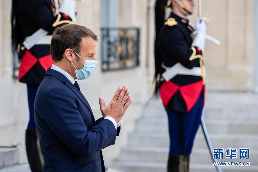 这是2020年8月26日,法国总统马克龙在位于巴黎的总统府爱丽舍宫迎接来访的塞内加尔总统萨勒的资料照片。