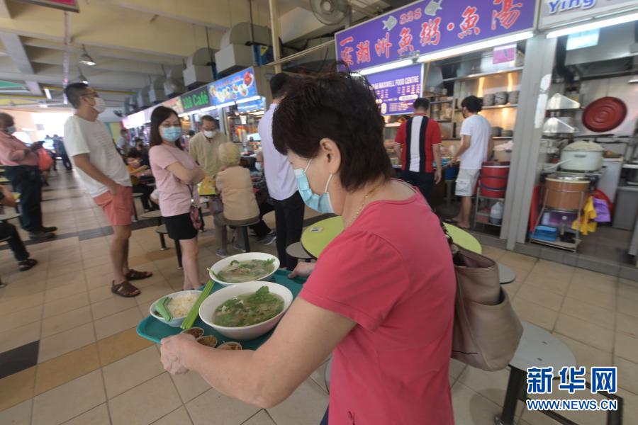 12月17日,食客在新加坡竹脚小贩中心购买食品。