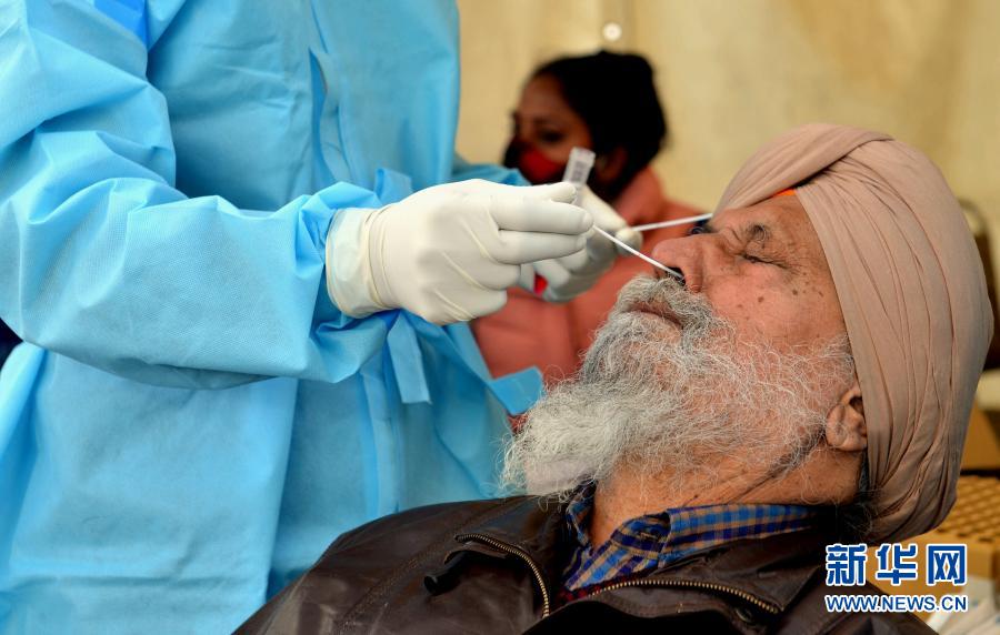 12月19日,乘客在印度德里一处巴士终点站接受新冠病毒检测取样。新华社发(帕塔·萨卡尔摄)