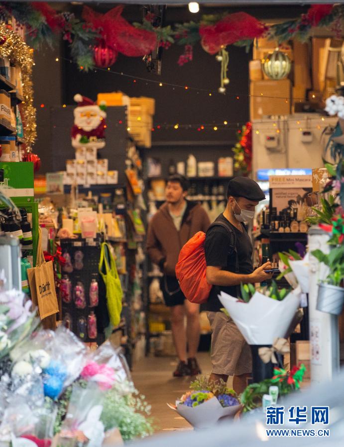 12月19日,在澳大利亚悉尼,戴着口罩的市民在商店购物。新华社发(胡泾辰摄)