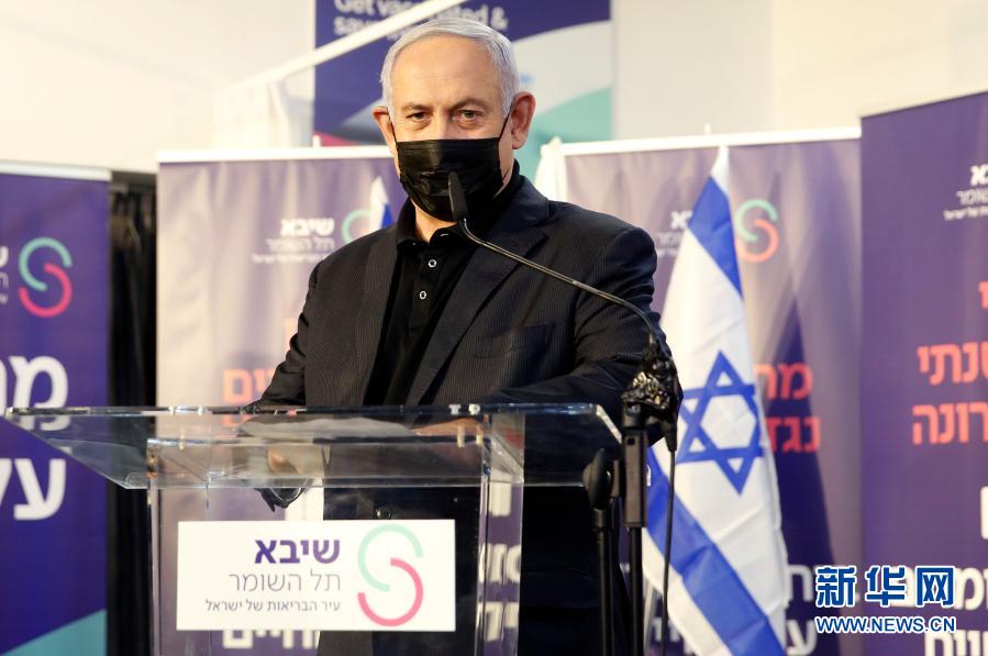 12月19日,在以色列拉马特甘的谢巴医疗中心,以总理内塔尼亚胡接种新冠疫苗后发表讲话。以总理府19日发表声明说,总理内塔尼亚胡当天“率先”接种了新冠疫苗。新华社发(吉尔·科恩·马根摄)