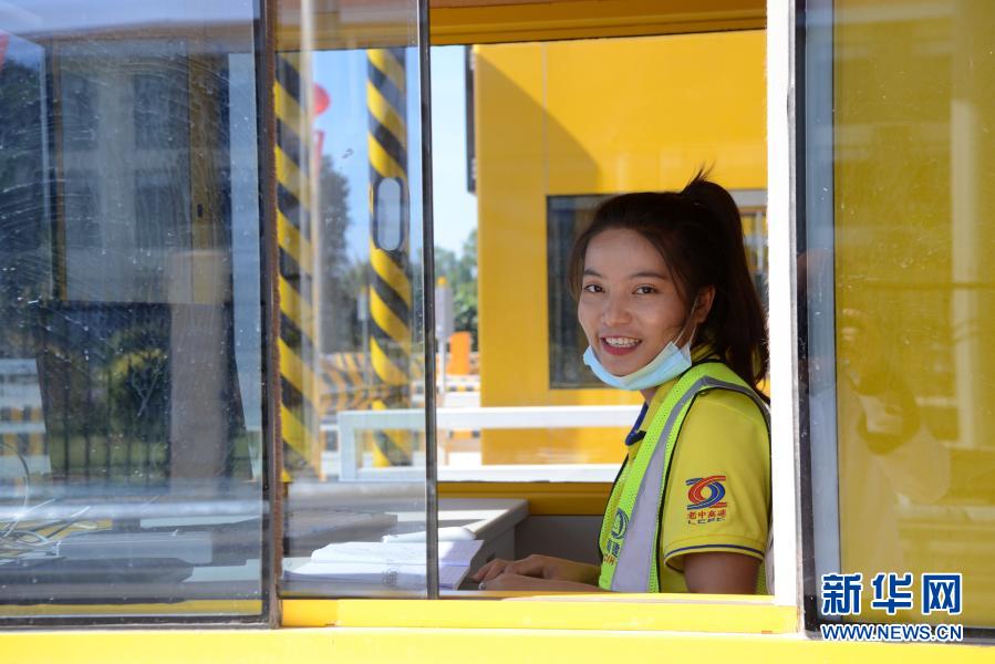 这是12月20日在老挝首都万象拍摄的中老高速公路万象至万荣段万象出入口的工作人员。