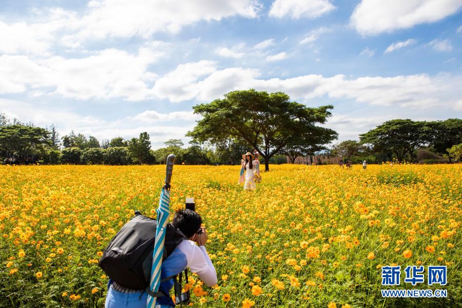 12月19日,游客在泰国呵叻府吉姆汤普森农场参观游览时留影。