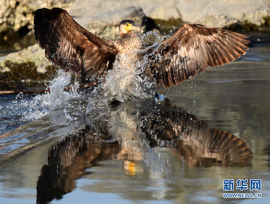 12月20日,一只鸬鹚在科威特杰赫拉省海边觅食。新华社发(加齐摄)