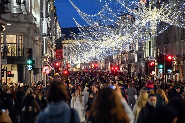 12月19日,人们走在英国伦敦街头。新华社/美联