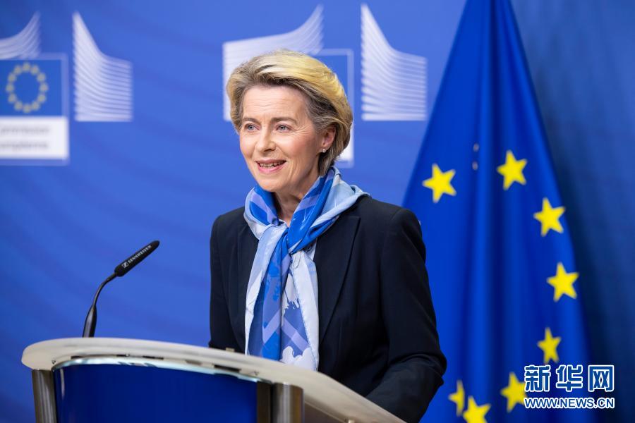 12月21日,在比利时布鲁塞尔,欧盟委员会主席冯德莱恩就疫苗有条件上市发表声明。