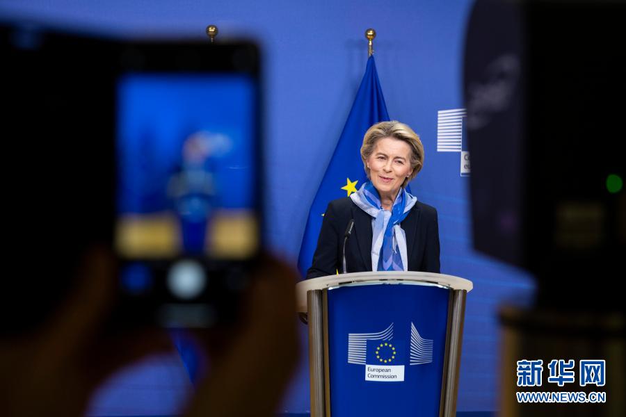 12月21日,在比利时布鲁塞尔,欧盟委员会主席冯德莱恩就疫苗有条件上市发表声明。