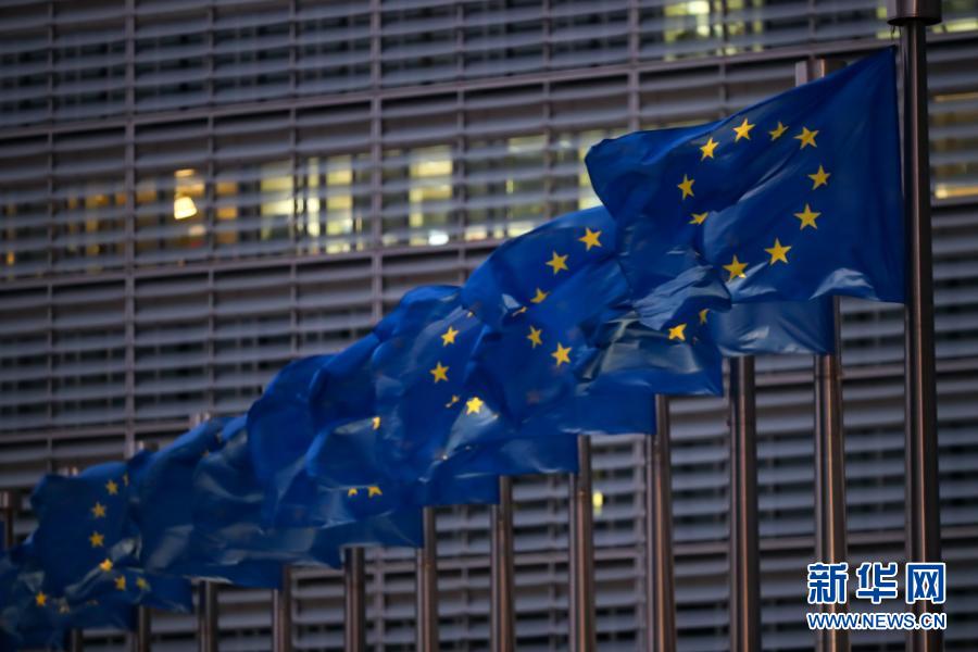 这是12月24日在比利时布鲁塞尔拍摄的欧盟委员会总部大楼前的欧盟旗帜。新华社记者 张铖 摄