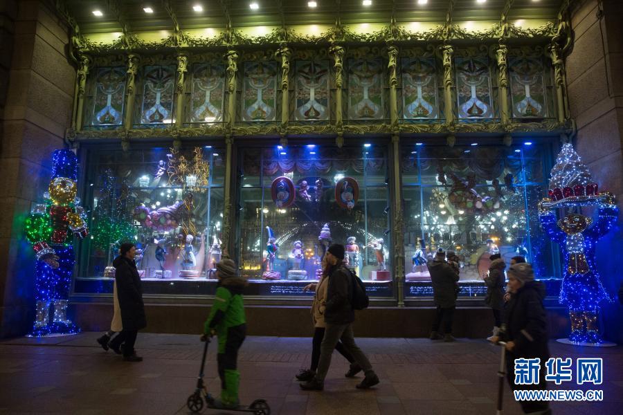 这是12月24日拍摄的俄罗斯圣彼得堡街头的灯饰。新华社发(莫京娜摄)
