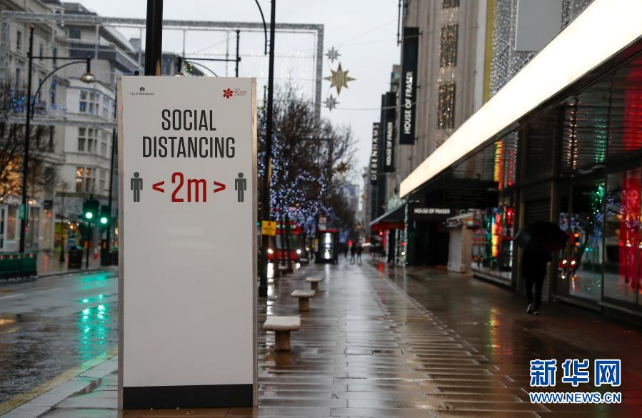 12月21日,英国伦敦的商业街牛津街一片冷清。新华社记者 韩岩 摄