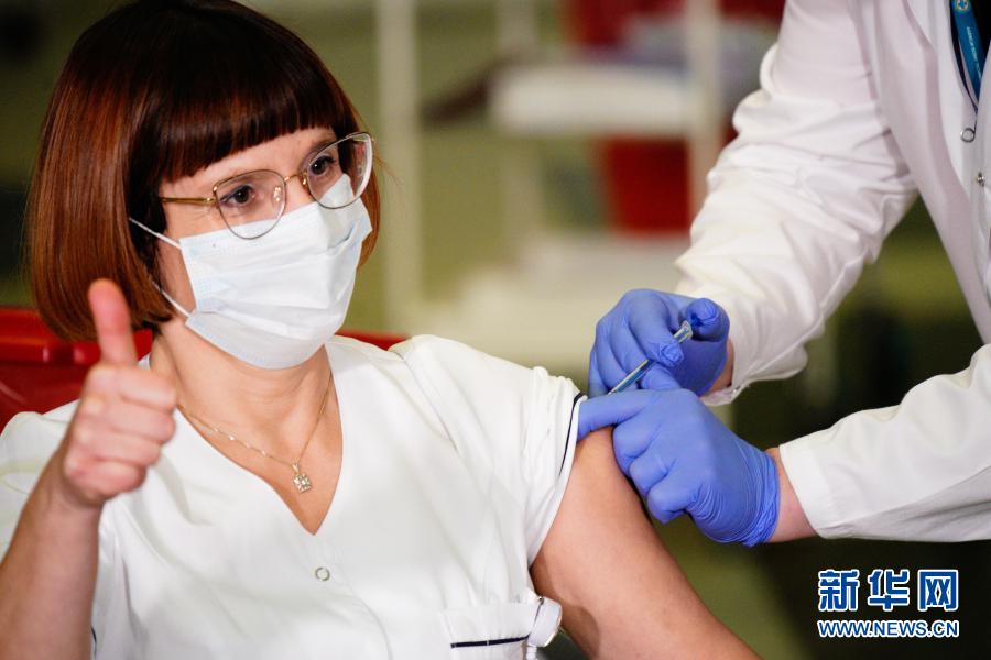 12月27日,在波兰首都华沙一家医院,一名护士接种新冠疫苗。