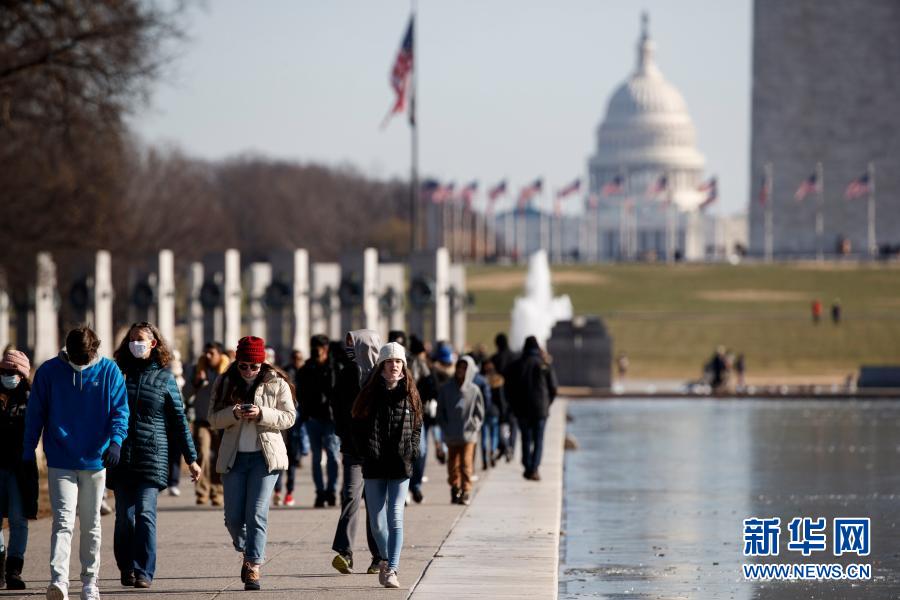 12月27日,人们在美国华盛顿的国家广场漫步。
