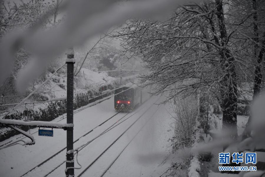 这是12月28日在意大利北部城市米兰拍摄的雪景。新华社发(达尼埃莱·马斯科洛摄)