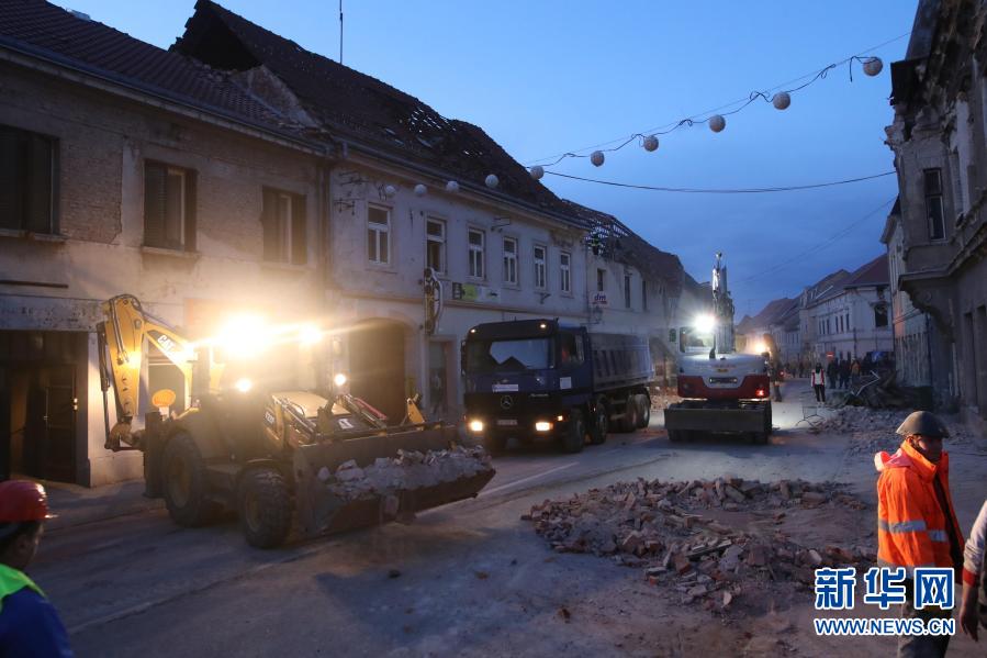 12月29日,救援人员在克罗地亚小城彼得里尼亚清理地震废墟。新华社发(Pixsell图片社 卢库尼奇摄)