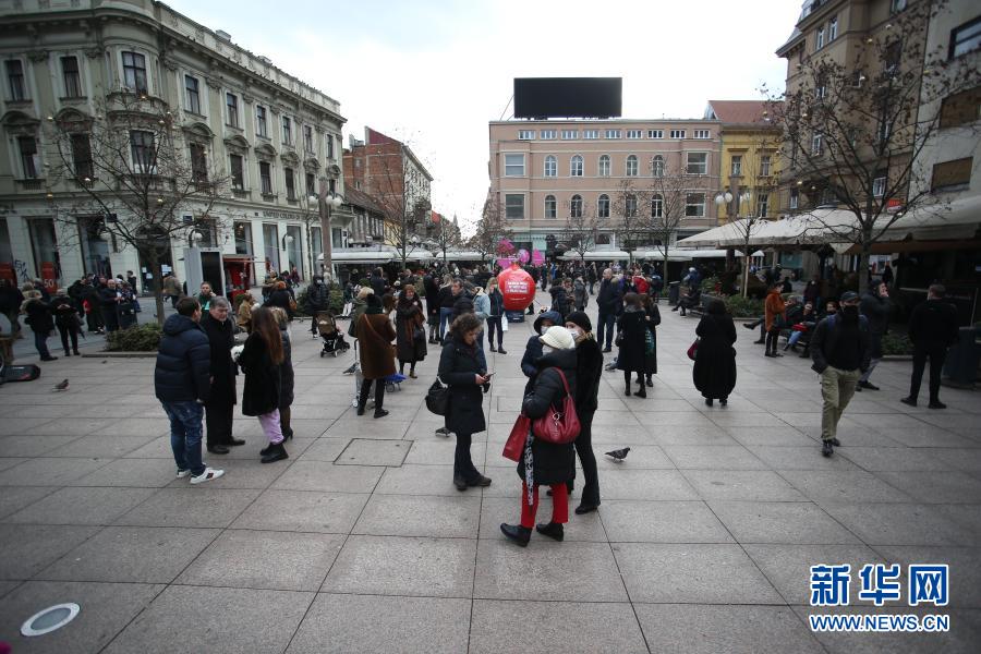 12月29日,在克罗地亚首都萨格勒布,人们在地震后聚集在市中心的一处广场。