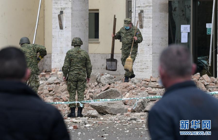 12月29日,士兵在克罗地亚首都萨格勒布清理震后废墟。