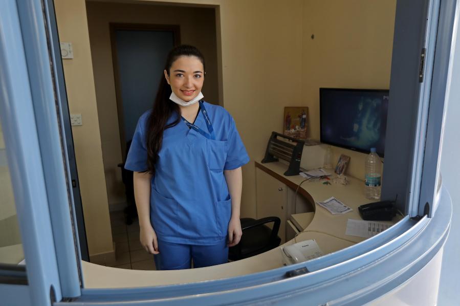 这是在黎巴嫩首都贝鲁特的圣乔治医院拍摄的护士帕梅拉·泽农(12月13日摄)。帕梅拉·泽农在今年8月发生的贝鲁特港大爆炸中因怀抱三个婴儿在这家医院的相同地点打电话的瞬间被新华社报道员拍摄到,而引发国内外大量关注。她说:“2020年发生了太多不幸的事情,我希望2021年一切都能好起来。我希望贝鲁特的政治经济状况能够好起来,疫情早日过去,一切恢复正常。”