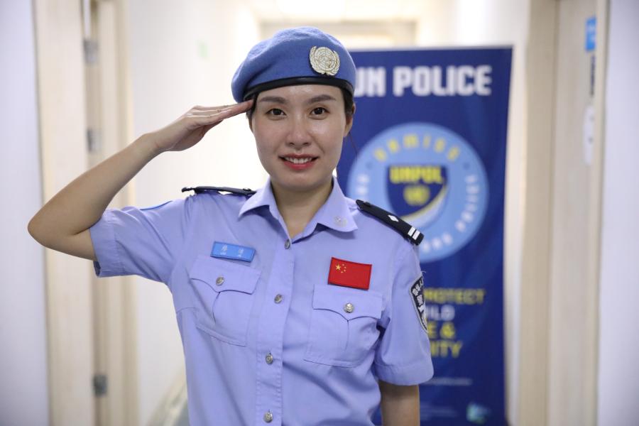 这是在南苏丹首都朱巴拍摄的中国第八支赴南苏丹维和警队队员廖洁(12月22日摄)。疫情期间,廖洁为任务区和南苏丹当地的防疫工作做了大量工作。她说:“2021年,我希望南苏丹的和平进程能够进展顺利,希望我的祖国能够越来越强大,也期待和家人的团聚。”