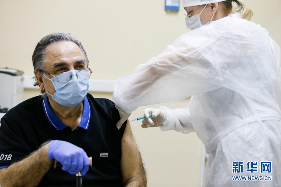 12月30日,在俄罗斯首都莫斯科,一名医护人员为一名老人接种疫苗。新华社发(亚历山大摄)