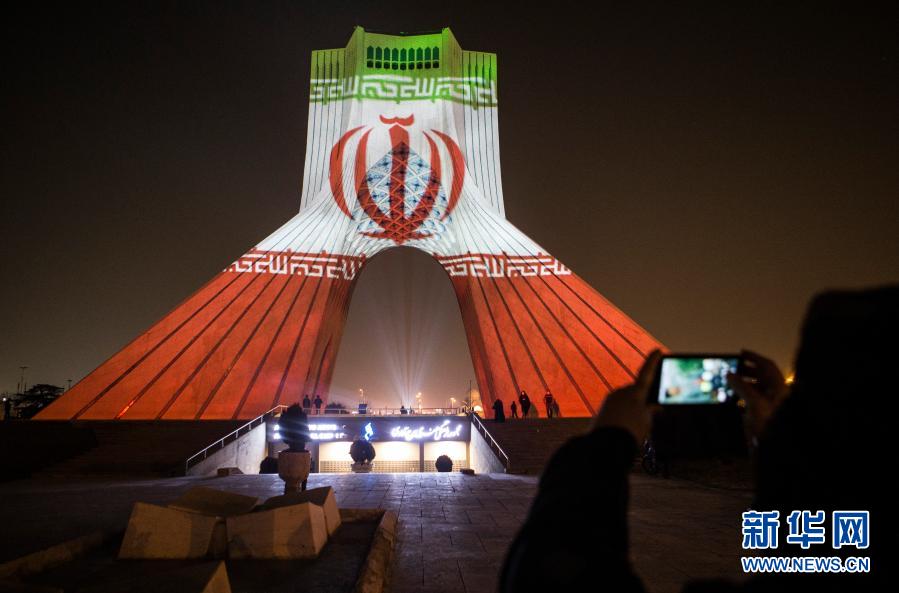 这是1月1日在伊朗首都德黑兰举行的苏莱曼尼遇难周年悼念活动上拍摄的地标建筑自由塔。新华社发(艾哈迈德·哈拉比萨斯摄)