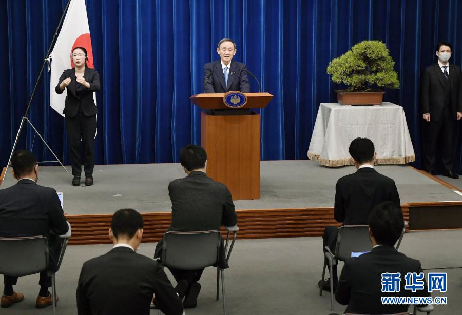1月4日,日本首相菅义伟在东京召开新闻发布会。日本首相菅义伟4日在东京举行记者招待会,就新冠疫情防控、经济发展、外交等内容发表讲话,强调应对疫情是当务之急。新华社/共同社