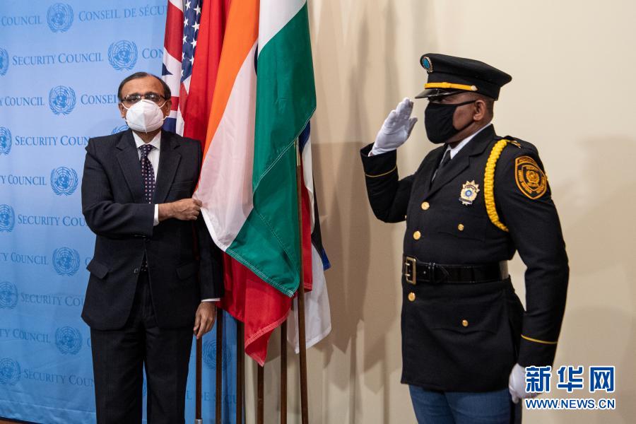 印度、爱尔兰、肯尼亚、墨西哥和挪威5国国旗安放仪式1月4日在联合国安理会厅外举行,标志着5国开始履行安理会非常任理事国职责。