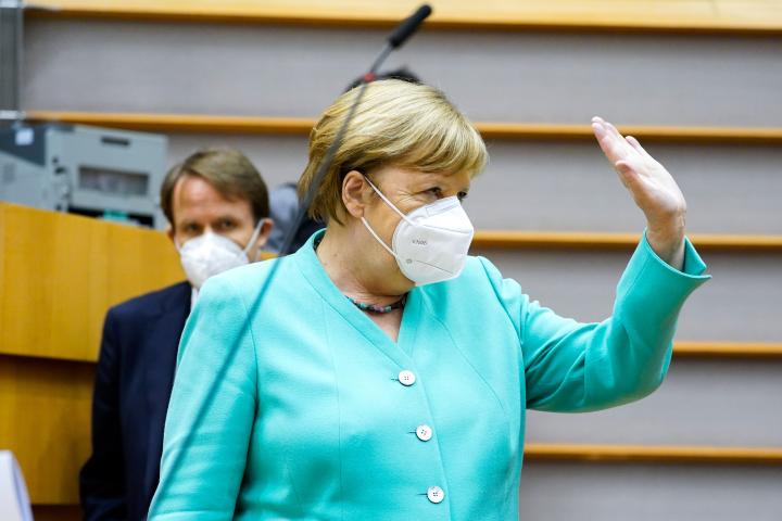 2020年7月8日,德国总理默克尔在比利时布鲁塞尔准备出席欧洲议会全会。(新华社发,欧盟供图)